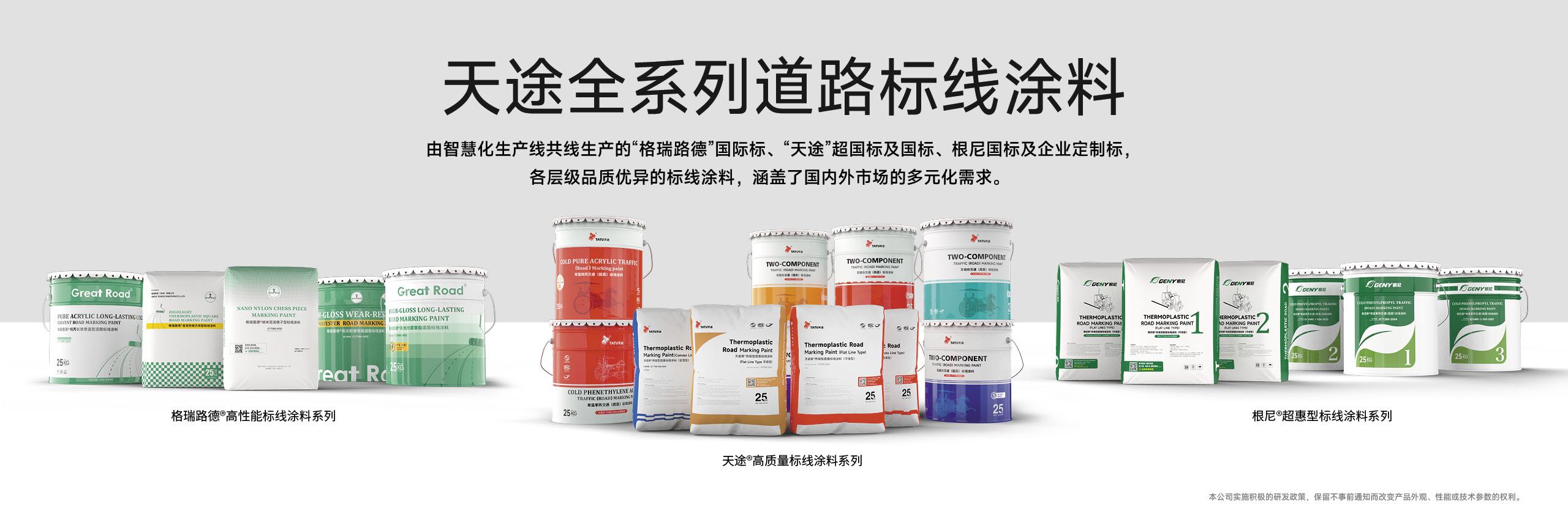 天途標線是道路劃線設備、標線涂料、涂料輔料以及專用樹脂等綜合服務商,先后服務于100多個國家和地區的上萬家客戶。20多年來,產品深耕細作在道路標線領域,在標線行業擁有豐富的實踐經驗,能夠為客戶提供高質量的建廠承包、生產線供應、材料供應以及技術支持等服務。