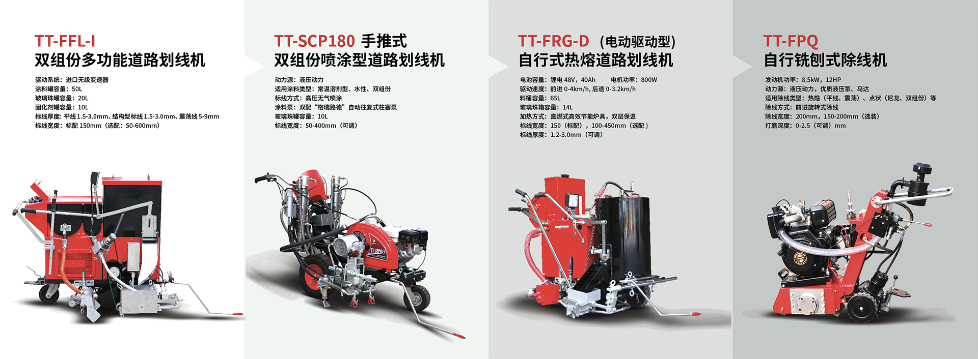 發揮各門類產品全覆蓋優勢,提供如劃線機、劃線車、水清除、道路養護與安全保障設備等成套解決方案,滿足大中小型工程施工中的設備租賃、調劑、置換等服務需求。