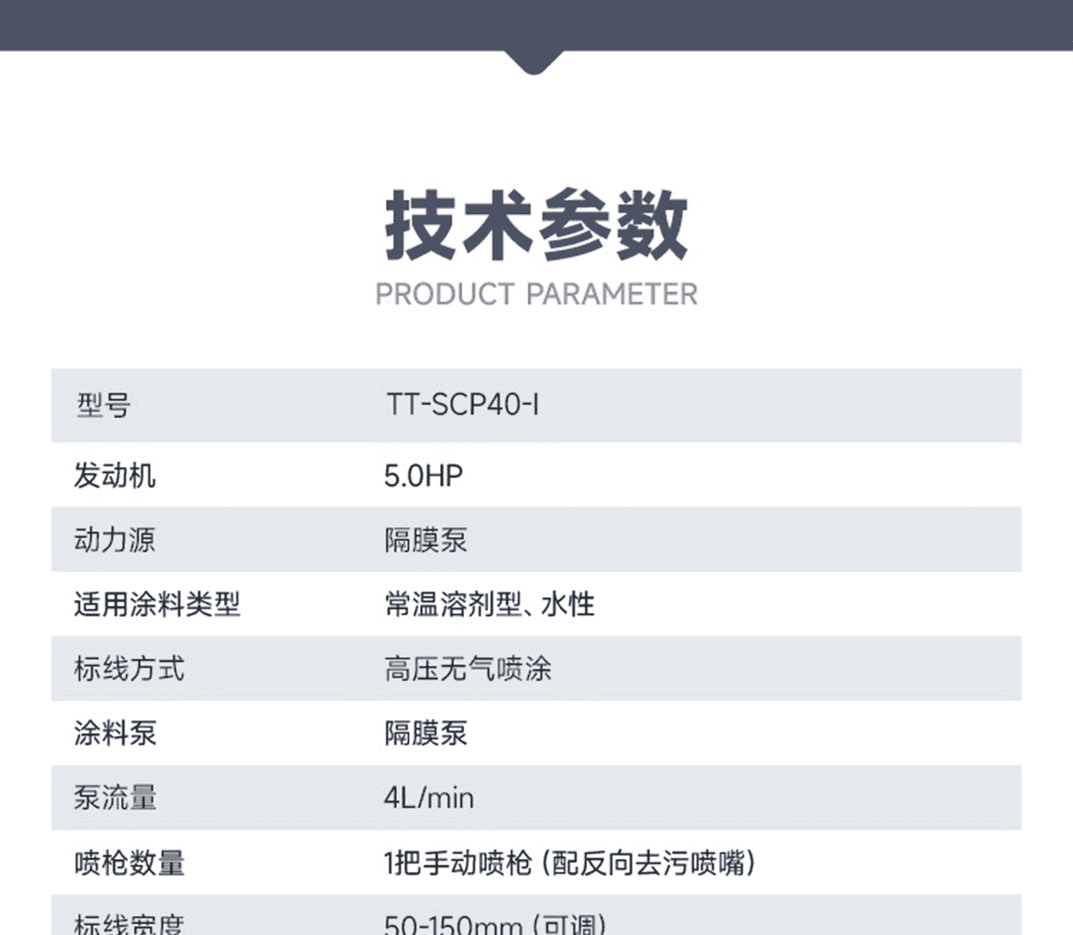 主要特點:隔膜泵性能可靠、壽命長、易維護、壓力穩(wěn)、噴涂效率高。