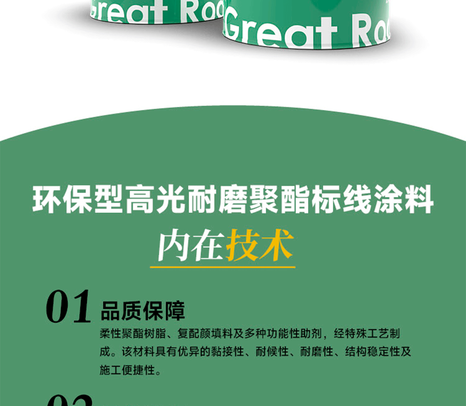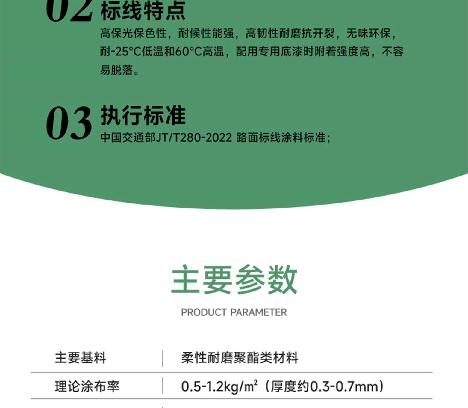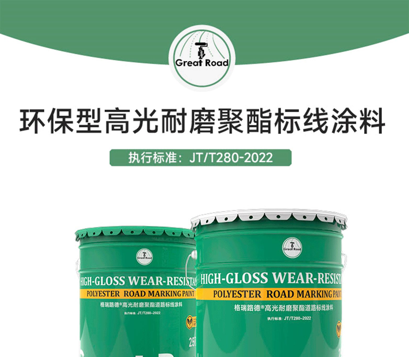 環保型高光耐磨聚酯標線涂料,由柔性聚酯樹脂、復配顏填料及多種功能性助劑,經特殊工藝制成。該涂料具有優異的黏接性、耐候性、耐磨性、結構穩定性及施工便捷性。