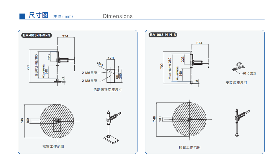 采用箱式直線軸承,可適應粉塵較大的工作環境。 操作簡便、靈活,在工作范圍內可360度任意點工作。 支撐桿采用鍍硬鉻鋼棒,硬度高,長時間使用也可保持順滑。 支撐桿和搖臂剛性按4倍安全系數設計,剛性高,不易變形,長期使用依然保持較高垂直度。吊塊和限位塊調節方便,可調范圍超過300MM,適應性強。 可搭配活動鑄鐵座,無需在工作臺打螺絲固定,安裝方便。 結構簡單,外觀件防銹可靠,無需專門維護,性價比高。 臂展、高度、螺絲刀夾塊支持定制。聯系艾而特