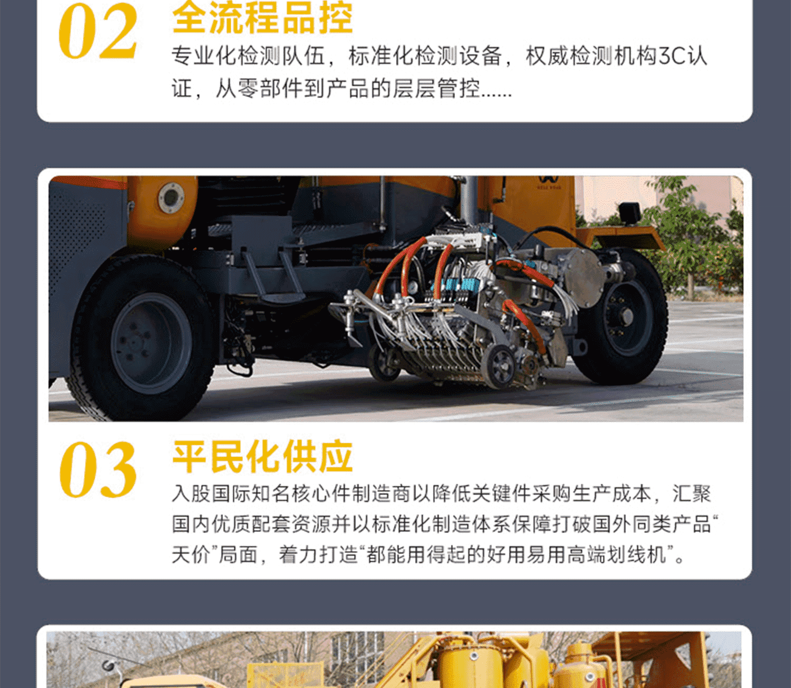 ?專家測評:核心品質: 動力強勁,運行平穩,全液壓驅動,進口液壓件、易調整多功能劃線端、易操作式人機對話、導熱油保溫熱熔釜。主要特點:擠壓施工,線寬可調;多功能料斗可施劃多種線型、易維護、雙側劃線、劃線效率高